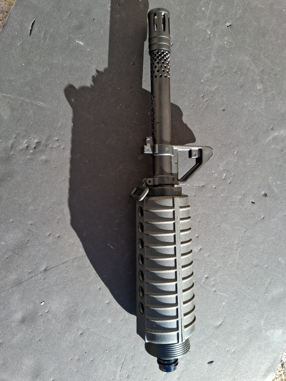 Bonjour vend canon lapco customisé M4 au pas tippmann 98 (t98) diamètre 0.687 de 16 pouces ( neuf) et un garde main m4 de la marque klent occasion en très bon état .