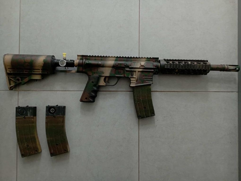Cause arrêt de la discipline, vend lanceur en très bon état acheté neuf, il a fait 3/4sorties maxi, peinture maison à la bombe. Vendu sans optique mais avec 2 Chargeur supplémentaire, l'un d'eux a la molette en moins mais il fonctionne toujours bien. Bouteille incluse utilisable jusqu'en 2028. Je n'ai plus l'emballage d'origine.